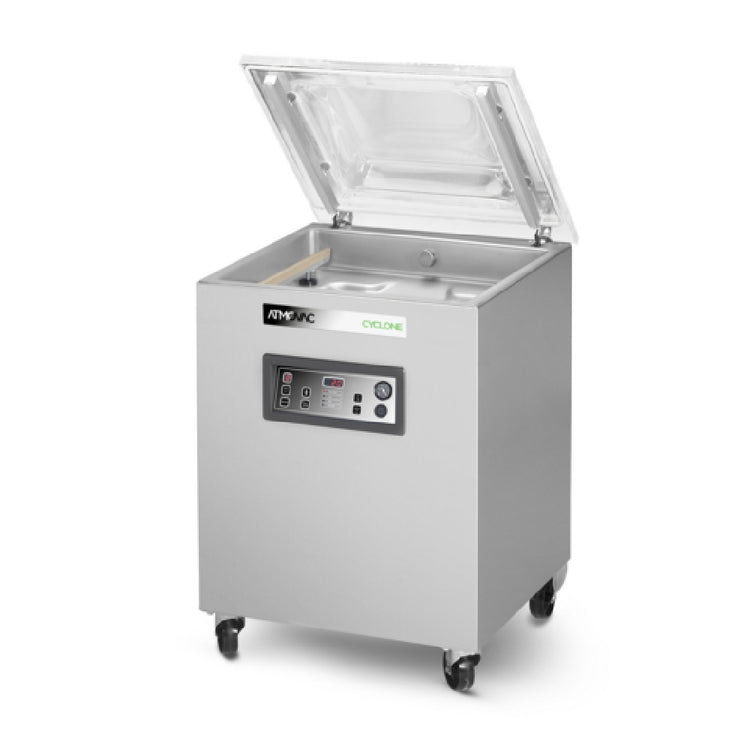 Eurodib USA, CYCLONE201D48, ATMOVAC Premium Chamber Vaccum Machine, floor model, 20.5"W x 19.7"D x 7.9"H chamber, (2) 20.5" sealing bars, 48 m³h pump speed, 15- 35 second machine cycle, becker pump. lock-in wheels, stainless steel exterior and interior chamber, 2500 watts, 220v/60/1-ph, 19.5 amps, cord, NEMA L6-30P, cETLus, NSF