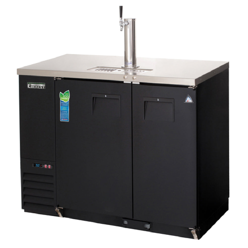 A commercial draft beer cooler is a specialized refrigeration unit designed to store and dispense beer in high-volume environments such as bars and restaurants. Equipped with precise temperature controls, durable construction, and integrated dispensing towers, these units maintain optimal conditions for beer quality while supporting efficient service workflows. The Everest Refrigeration EBDS2-BB-24 combines a self-contained refrigeration system with a dual-section design, including keg storage and a stainless steel draft tower, making it well-suited for medium-volume beverage service operations and high-traffic hospitality venues.
