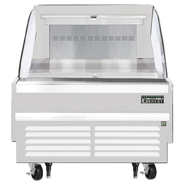 Compared to similar open merchandisers, the Everest Refrigeration EOMH-36-W-35-S combines durable stainless steel construction, efficient hydrocarbon refrigeration, and a compact, mobile design for seamless integration into commercial environments. Its LED lighting and secure night curtain improve display quality and security, while its balanced airflow and easy maintenance streamline daily operations, making it a restaurant-ready solution for mid-volume product display.