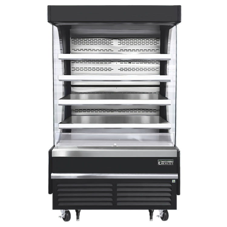 Everest Refrigeration EOMV-48-B-35-T 48 Inch Open Refrigerated Display 24 Cu Ft Stainless Steel Black with Adjustable Shelves