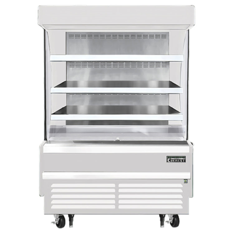 Everest Refrigeration EOMV-48-W-28-S 48 Inch Open Display Merchandiser 12.2 cu ft stainless steel white with adjustable shelves