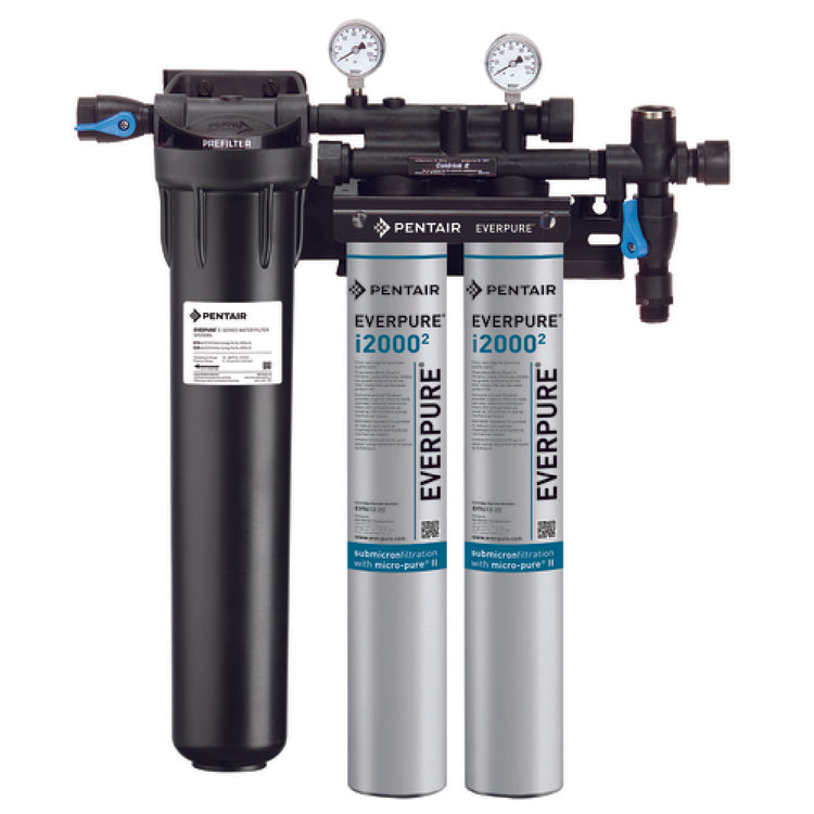 The Everpure EV932422 Insurice® Water Filtration System Insurice® Twin PF-i2000² is a high-performance commercial water filtration unit designed specifically for ice machines. Engineered by Everpure, this system features dual filters that effectively reduce chlorine, taste, and odor, while inhibiting scale formation. With a precise micron rating of 0.5 microns, it provides reliable primary filtration for demanding foodservice environments. Capable of processing up to 18,000 gallons, this NSF-listed unit delivers optimized flow rates of 2.1 to 5.0 GPM through its twin Micro-Pure® II precoat cartridges. Its robust construction and technical specifications make it suitable for restaurant, hotel, and large-scale hospitality applications requiring consistent water quality and filtration efficiency.