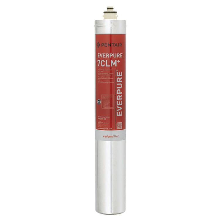 The Everpure EV977100 Everpure® 7CLM+ Replacement Prefilter Cartridge with a 5.0 micron rating is a high-performance sediment, chlorine, taste, and odor filter designed for commercial water filtration systems. Crafted by Everpure, this cartridge offers a rated capacity of 7,500 gallons and a flow rate of 1.67 gpm, making it suitable for medium-volume foodservice applications. Its precise filtration reduces chlorine, particulates, chloramines, and undesirable taste and odor compounds, ensuring optimal water quality for beverage stations, coffee brewing, and general filtration needs in hospitality environments.