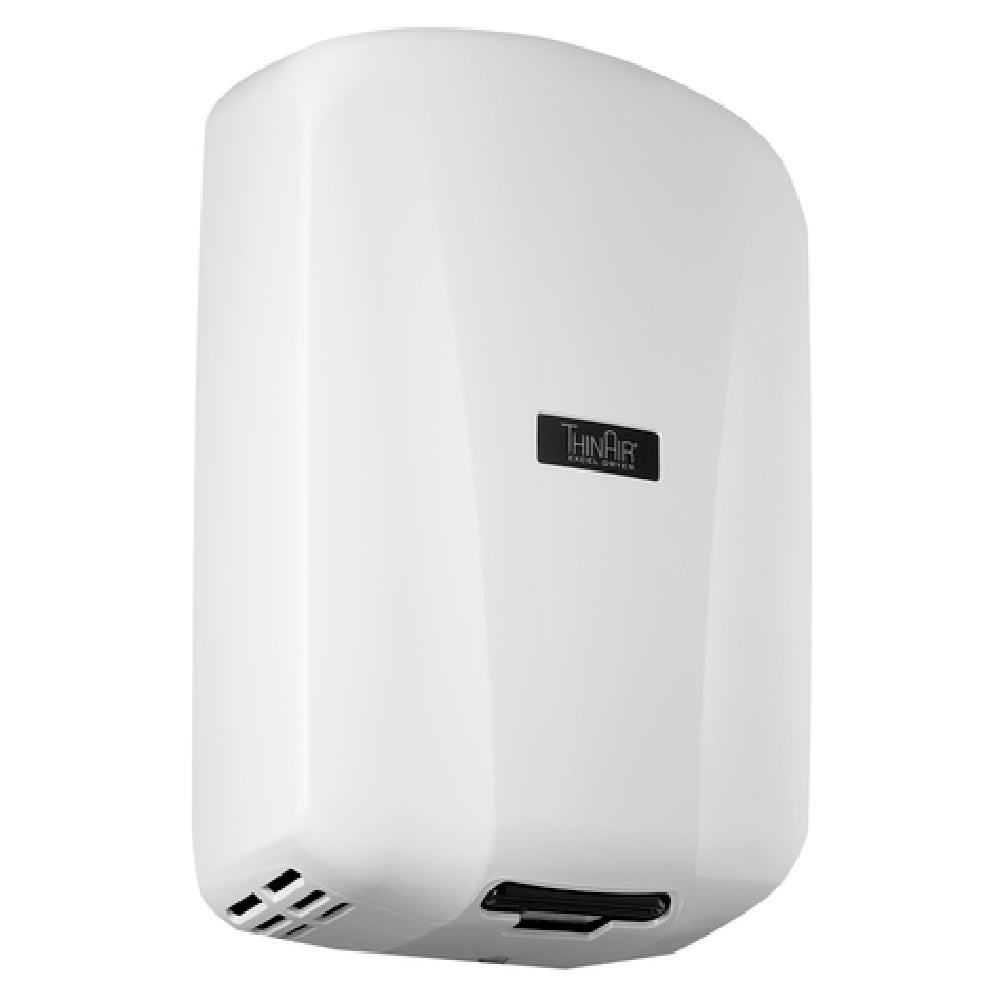 The Excel Dryer TA-ABS_230/50/1 ThinAir® Hand Dryer offers quick drying performance ideal for high-volume foodservice environments, with surface-mounted installation and a durable antimicrobial ABS surface. Its adjustable speed and sound controls facilitate tailored airflow and noise levels, optimizing workflow efficiency. Designed for ease of maintenance, the unit features washable pre-filters to maintain hygiene standards. Its 14-second dry time supports rapid turnover in busy restrooms, making it a practical choice for commercial kitchens and hospitality restrooms requiring reliable, quick-drying hand hygiene solutions.