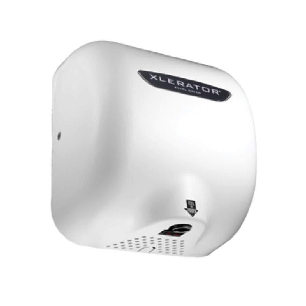 The Excel Dryer XL-BW_230/50/1 XLERATOR® Hand Dryer is a high-performance surface-mounted hand drying solution designed for commercial facilities requiring rapid and hygienic hand sanitation. Engineered for efficiency, this model operates with an 8-second dry time, utilizing a sensor-activated automatic system to minimize contact and reduce cross-contamination. Constructed with durable thermoset resin (BMC) and finished in white, it is suitable for high-traffic restrooms, healthcare environments, and foodservice settings. The unit features adjustable speed and sound controls, a 35-second lockout for safety, and a red LED indicator, ensuring operational flexibility and compliance with hygiene standards. Its compact dimensions—12.69 inches high, 11.75 inches wide, and 6.69 inches deep—make it ideal for streamlined mounting in busy environments demanding reliable hand hygiene equipment.