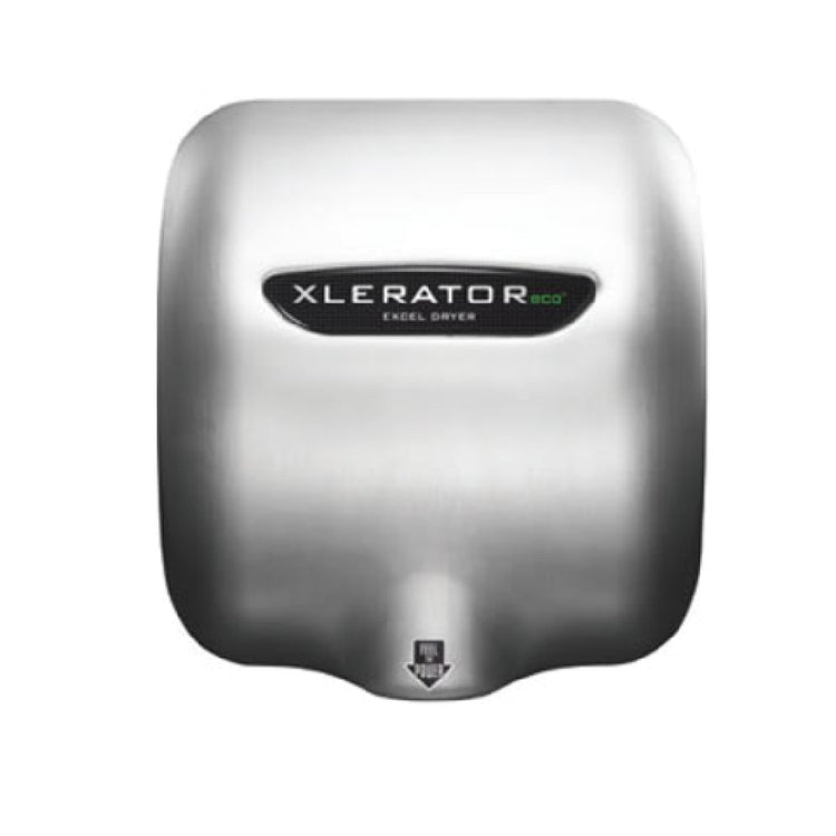 The Excel Dryer XL-SB-ECO_230/50/1 XLERATOReco® Hand Dryer is a professional-grade, surface-mounted hand drying unit designed for commercial washrooms and high-traffic facilities. Featuring a rapid 10-second dry time, this hand dryer employs automatic sensor activation for touchless operation, promoting hygiene and sanitation. Constructed with durable brushed stainless steel, it integrates advanced adjustable speed and sound control for user comfort. Technical specifications include a model number XL-SB-ECO_230/50/1, a height of 12.69 inches, width of 11.75 inches, and a depth of 6.69 inches, with a weight of 16 pounds. Equipped with safety and efficiency features, it satisfies multiple industry standards and is manufactured in the USA, offering a reliable solution for busy commercial environments seeking streamlined hand hygiene.
