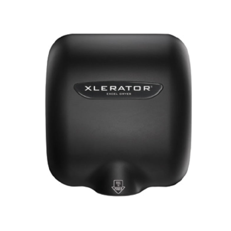 Excel Dryer, XL-SP-RB, XLERATOR® Hand Dryer, surface-mounted, 8 seconds dry time, automatic sensor activated, adjustable speed & sound controller, 35 second lockout feature, red LED light, painted epoxy, raven black finish, OSHA Approved, Building Green Approved, cULus, CE, RoHs, Made in USA