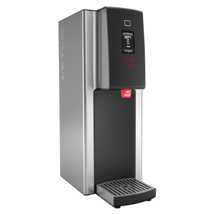 FETCO, H210521, Hot Water Dispenser, 5 gallon, single programmable temperature range from 158°F to 203°F, lock mode, touch function operation, soft silicone tap, drip tray overflow indicator, hi-resolution display, mixed material construction, 1 x 2.1kW heater, 120v, 1-ph, 2+G wires, 17.5 max amp draw, 2.2kW, NEMA 5-20P, 5.7 gallons per hour, UL, cUL, NSF