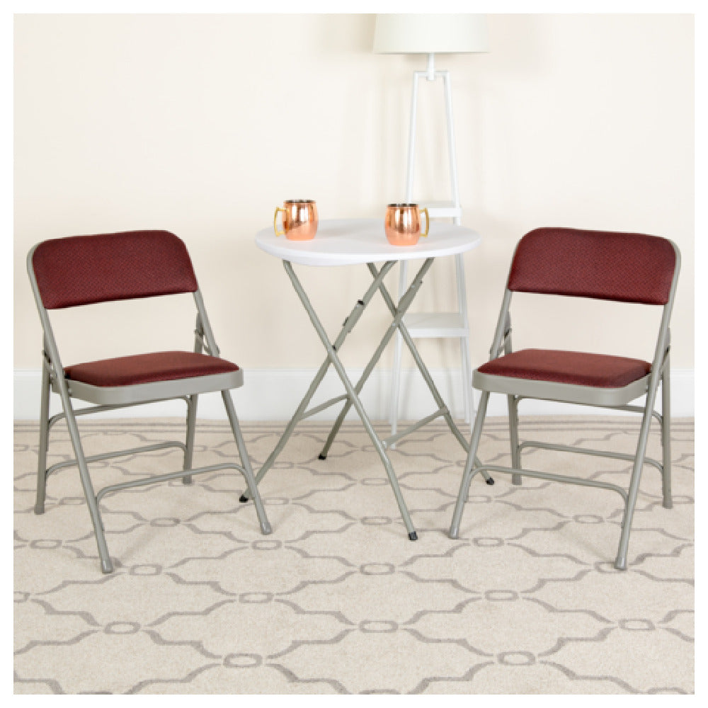 Why Choose Flash Furniture 2-AW-MC309AF-BG-GG? This model distinguishes itself through its triple braced metal frame, reinforced double hinges, and elegant burgundy patterned fabric, which combine to deliver superior stability and aesthetic versatility. Designed for rapid setup and comprehensive use in commercial venues, it offers durability and easy maintenance that surpass comparable models, supporting streamlined operations and professional presentation.