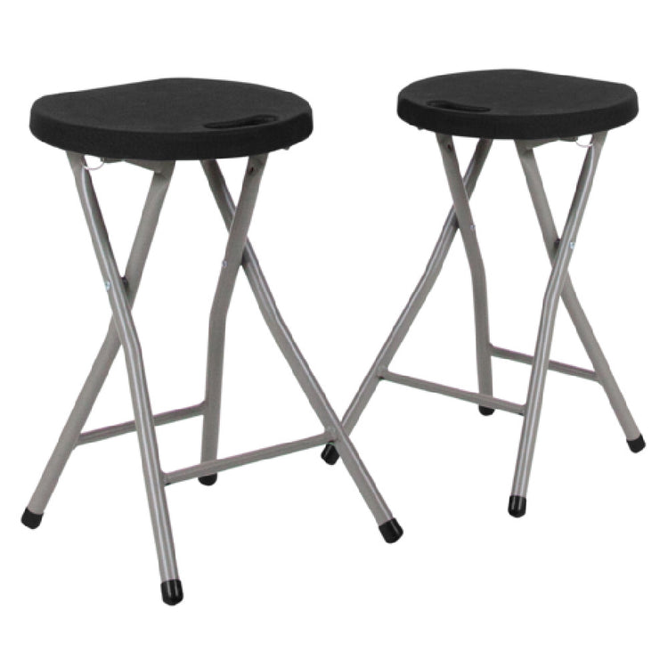 Compared to similar commercial stools, this model combines robust all-metal construction with a lightweight, foldable design that simplifies handling and storage. Its impact-resistant plastic seat and corrosion-proof frame support daily demanding use, ensuring long-term reliability. Additionally, its ergonomic height and ease of cleaning make it ideal for quick-service venues, supporting efficient seating arrangements without sacrificing durability. This set’s design also promotes sanitation and swift maintenance, improving operational flow in foodservice settings.