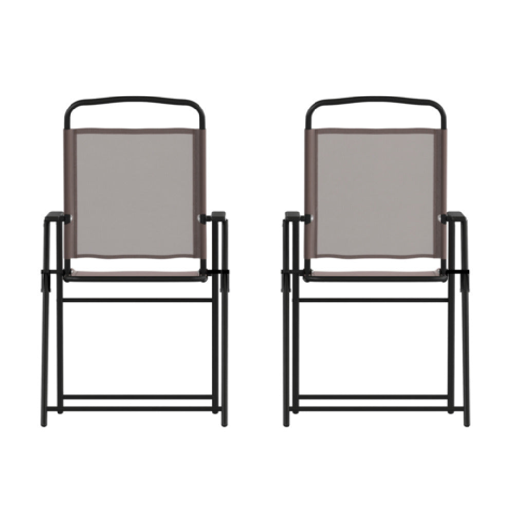 Flash Furniture 2-GM-SC098-BR-GG 20 Inch Folding Patio Chair with Armrests Brown - 1/Set