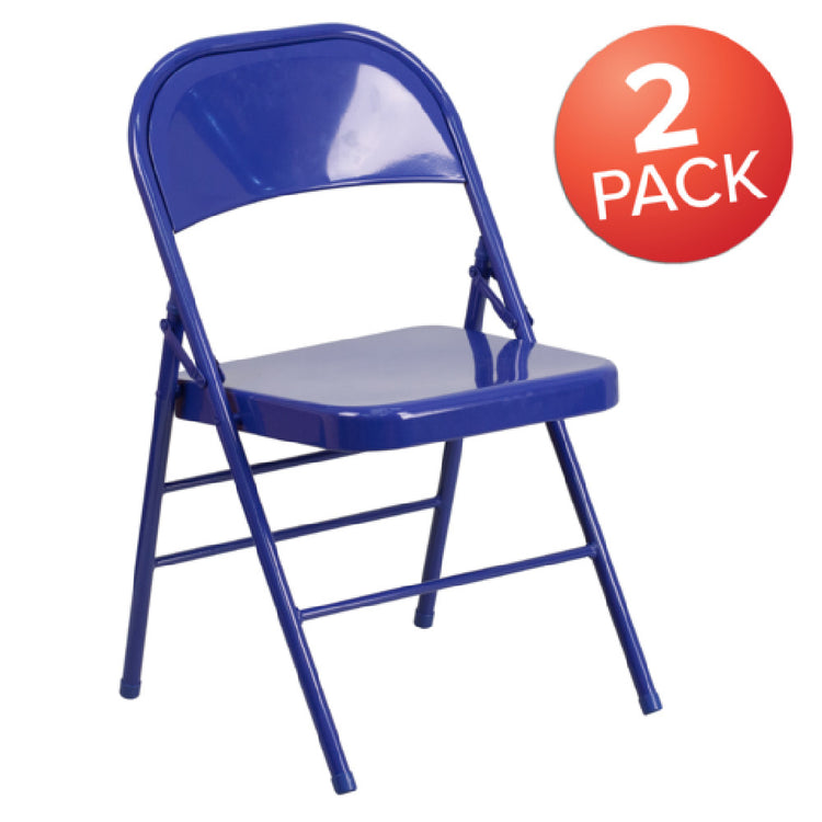 A commercial folding chair is a durable and versatile seating solution designed for high-traffic hospitality and event environments. Typically constructed with heavy-duty steel or aluminum, it supports frequent use and easy handling in busy foodservice operations. The Flash Furniture 2-HF3-BLUE-GG Hercules Colorburst Series Folding Chair is installed in banquet halls, outdoor patios, and conference areas, providing stable, space-saving seating for moderate workloads. Its foldable design facilitates quick deployment and removal, making it ideal for hospitality service, special events, and casual dining in commercial foodservice settings.