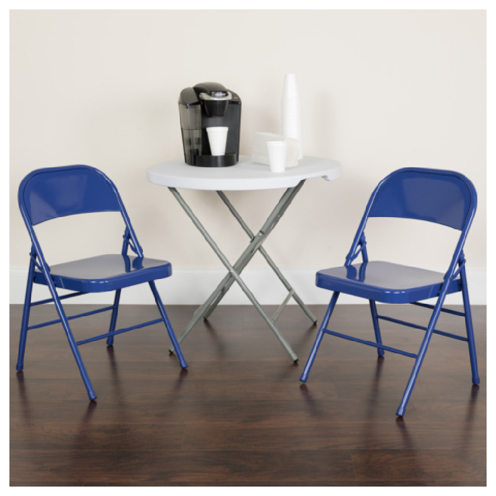Flash Furniture 2-HF3-BLUE-GG 18 Inch Folding Chair Metal Blue and Steel with Non Marring Glides - 1/Set