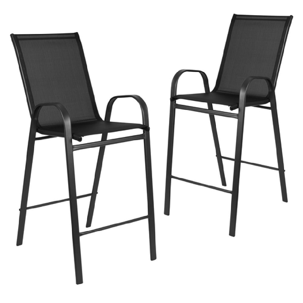 Flash Furniture 2-JJ-092H-GG 22 Inch Stacking Barstool Outdoor Black Metal Fabric - 1/Set