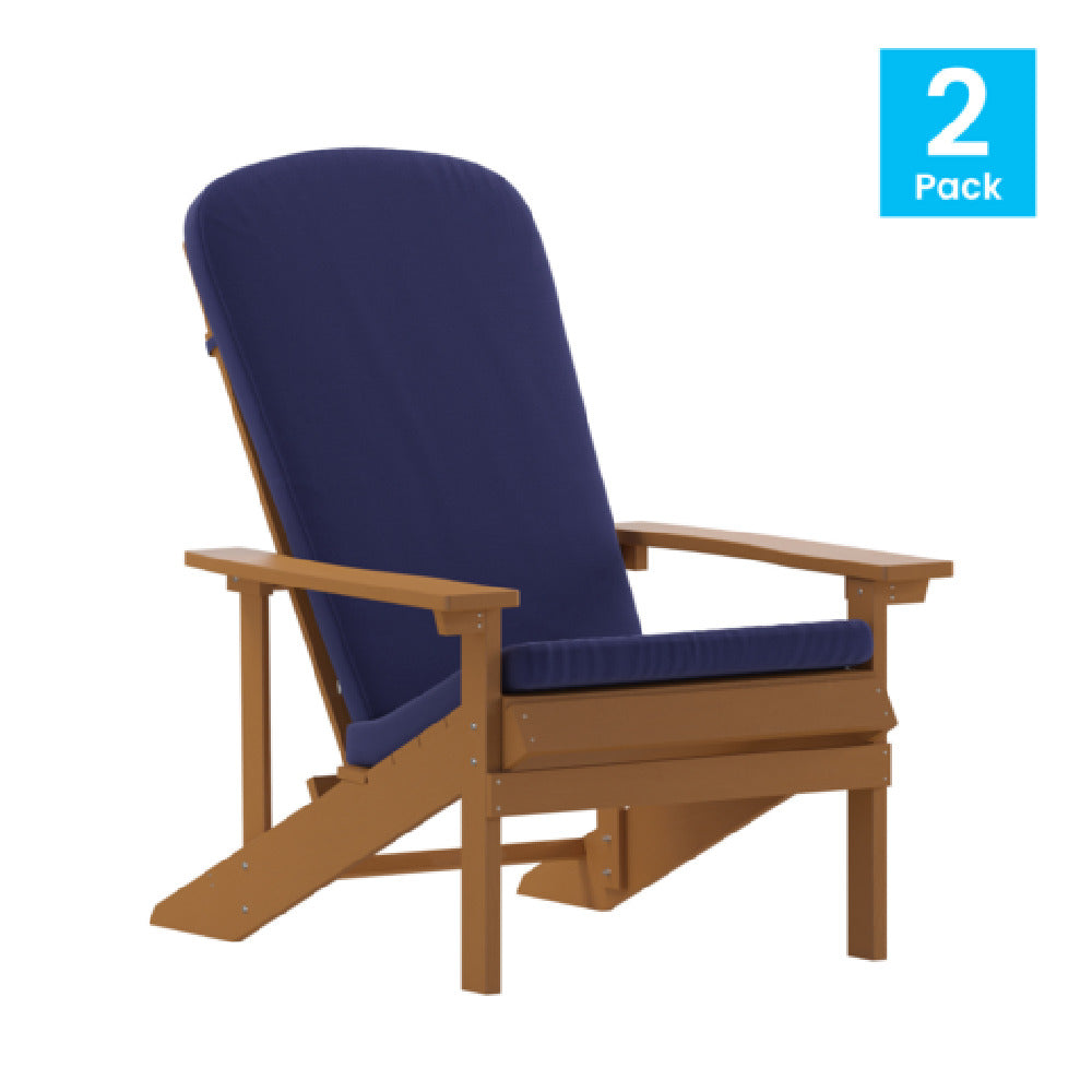 Flash Furniture 2-JJ-C14501-CSNBL-TEAK-GG 29 Inch Teak Adirondack Chair with Blue Cushions Set of 2 - 1/Set