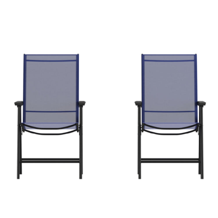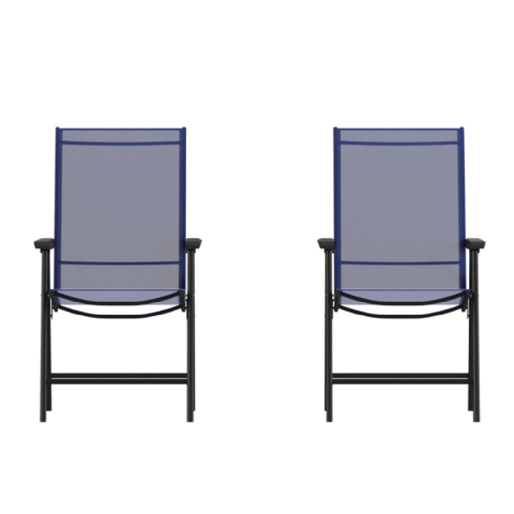 Flash Furniture, 2-TLH-SC-044-NV-GG, Paladin Folding Chair, 352 lb. weight capacity, breathable textilene fabric seat and back, armrest support, powder coated steel frame, navy, set of 2