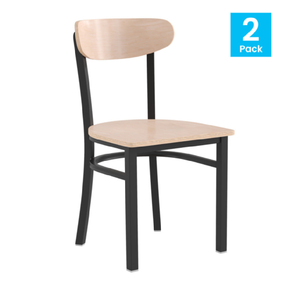 The Flash Furniture Wright Dining Chair model 2-XU-DG6V5B-NAT-GG exemplifies durable, commercial-grade seating designed for high-capacity indoor dining environments. Constructed with a natural birch finish, this side chair features a robust black steel frame supporting a wooden seat and backrest, optimized for frequent use in restaurant, cafeteria, or hospitality settings. Notably, it offers a 500-pound weight capacity, addressing the demands of diverse patron profiles and ensuring safety and longevity in busy service areas.
