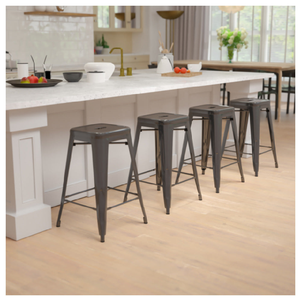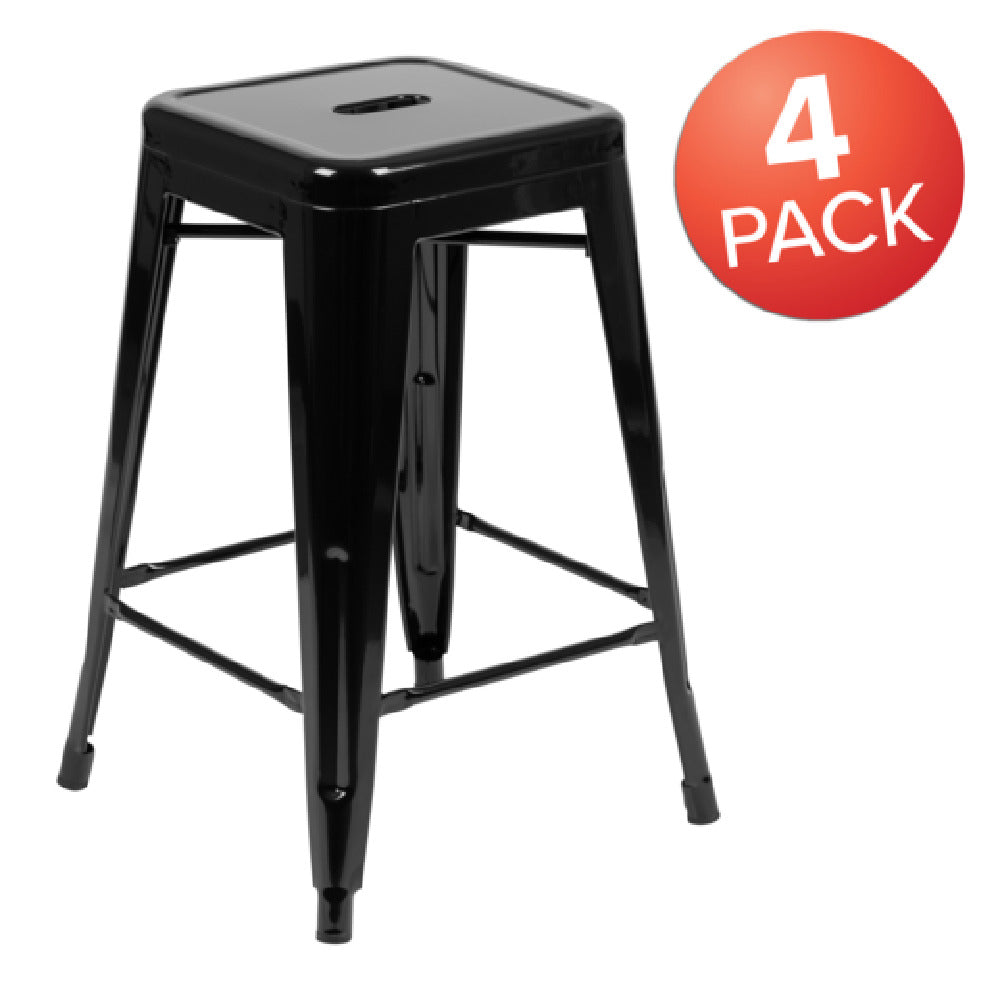 Flash Furniture 4-ET-31320-24-BK-R-GG 16 Inch Stacking Bar Stool Black Metal - 1/Set
