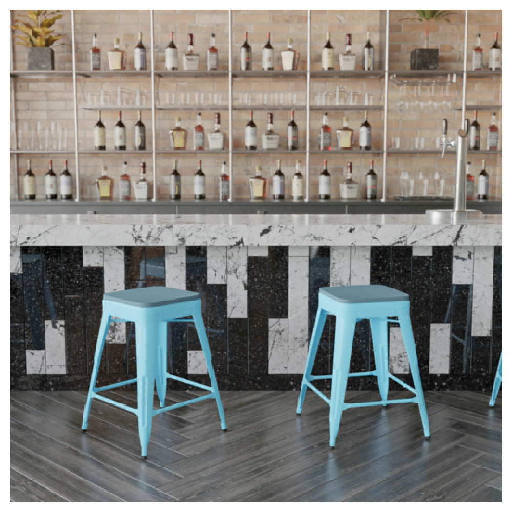 The Flash Furniture Cierra Stacking Bar Stool with model number 4-ET-31320-24-TL-R-PL2C-GG is a commercial-grade indoor seating solution engineered for high durability and ease of maintenance. Designed for foodservice environments requiring reliable and versatile seating, this stool features a teal-blue poly resin seat supported by a sturdy metal frame with a cross brace. It offers a 440 lb. weight capacity, a height of 24 inches, and a stacking capability of up to ten units, facilitating efficient storage in busy settings such as cafés, bars, or casual dining areas. Its robust construction and thoughtful design optimize workflow and maximize space utilization for medium-volume operations.