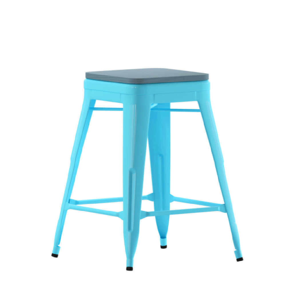 Flash Furniture 4-ET-31320-24-TL-R-PL2C-GG 16 Inch Stacking Bar Stool Indoor Teal Poly Resin 440 Lb Capacity - 1/Set