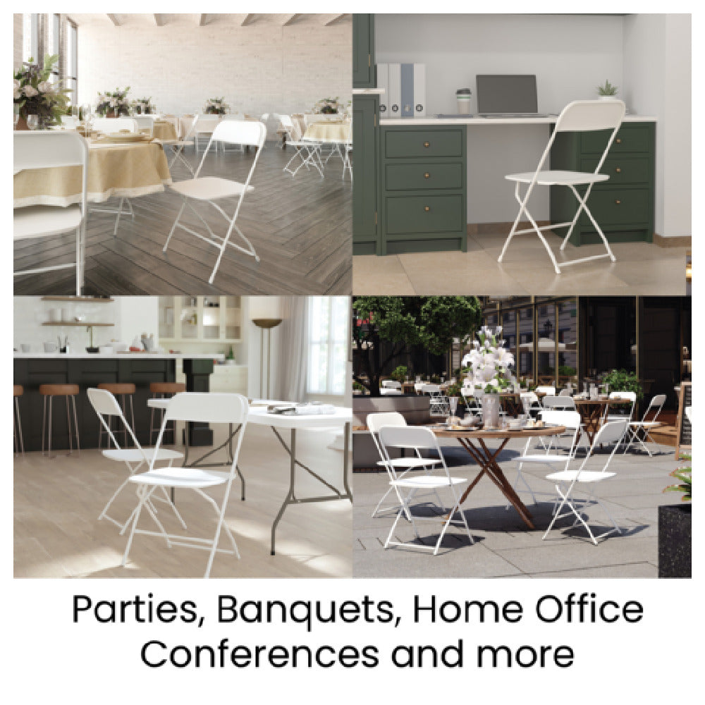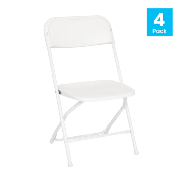 Flash Furniture, 4-LE-L-3-W-WH-GG, Hercules Series Big and Tall Folding Chair, 650 lb. weight capacity, lightweight, plastic contoured extra wide back and seat, textured seat with drain holes, double support rails, 18 gauge steel frame, white powder coated frame finish, non-marring floor caps, space saving nesting design, designed for indoor/outdoor commercial use, white (set of 4) (in stock items usually ship within 24 hours)