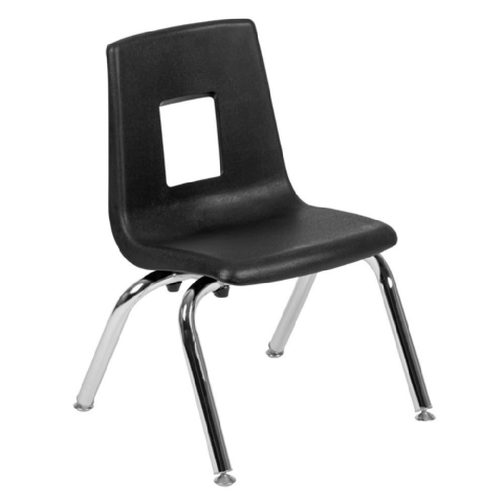 The Flash Furniture ADV-SSC-12BLK Mickey Advantage Stacking School Chair is a durable, space-efficient indoor seating solution designed for educational and commercial environments. Crafted with a polypropylene seat and a chrome-plated steel frame, it supports a weight capacity of 225 lbs. The chair features a 12-inch seat height suited for preschool and kindergarten age groups and includes nylon tipped glides for stability and easy stacking, enabling efficient storage and serving multiple users in classroom, daycare, or training facilities.
