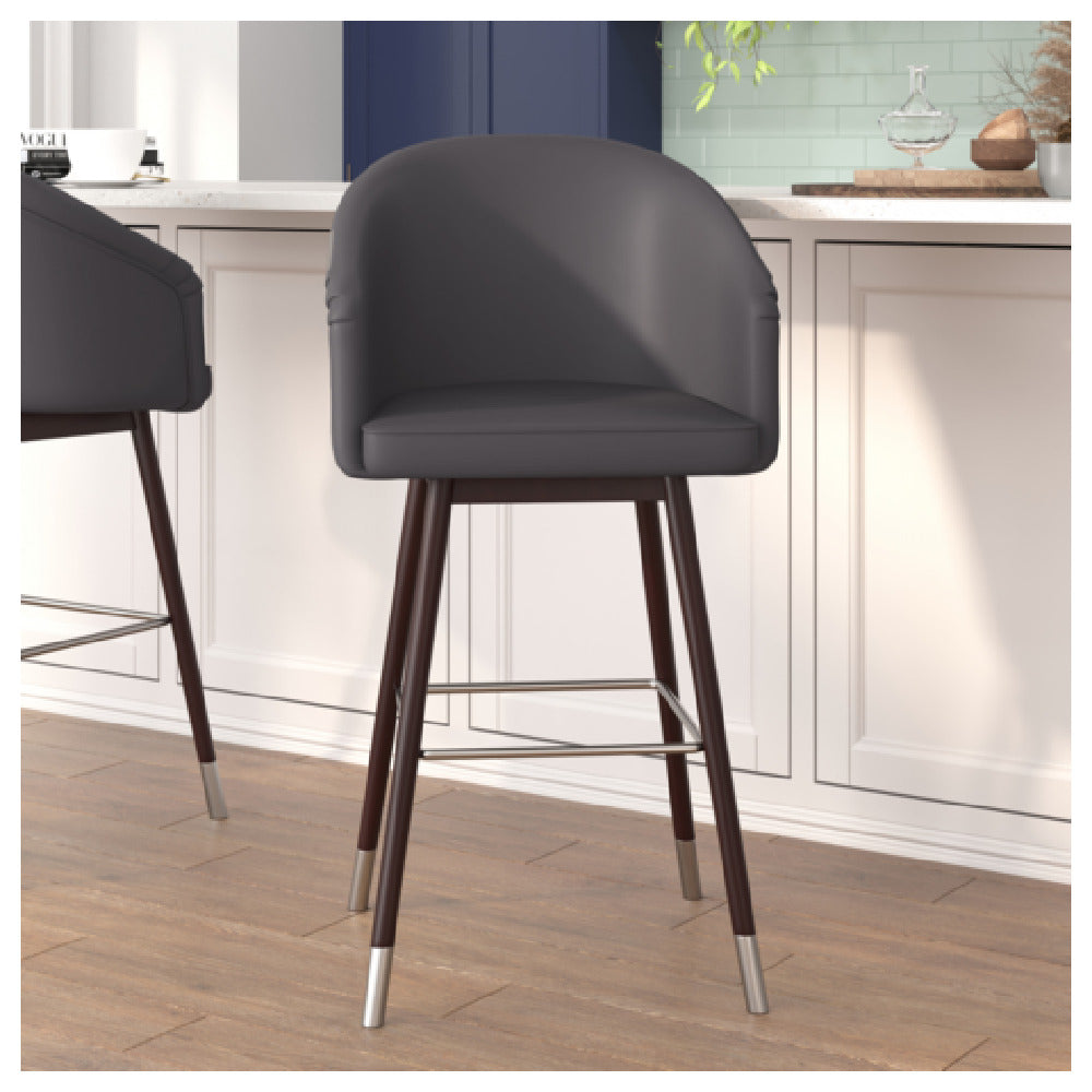 Flash Furniture AY-1928-30-GY-GG 22 Inch Bar Stool Mid-back with Gray Leather and Walnut Finish