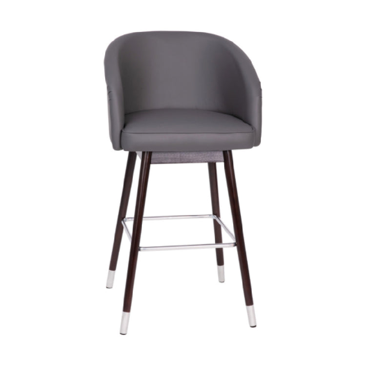 The Flash Furniture AY-1928-30-GY-GG Margo Bar Stool is a commercial-grade indoor seating solution designed for high-traffic hospitality and foodservice environments. This bar stool features a mid-back design, upholstered with bonded leather for durability and ease of maintenance. It measures 42 inches in total height with a 30-inch seat height, making it suitable for standard bar counters. The frame comprises sturdy beechwood legs with a walnut finish and bronze accents, ensuring both stability and aesthetic appeal. Its contour back provides ergonomic support, ideal for prolonged seating in busy bar, restaurant, or lounge settings. The model combines functional design with robust materials, meeting industry demands for comfort and longevity while supporting efficient workflow in commercial environments.