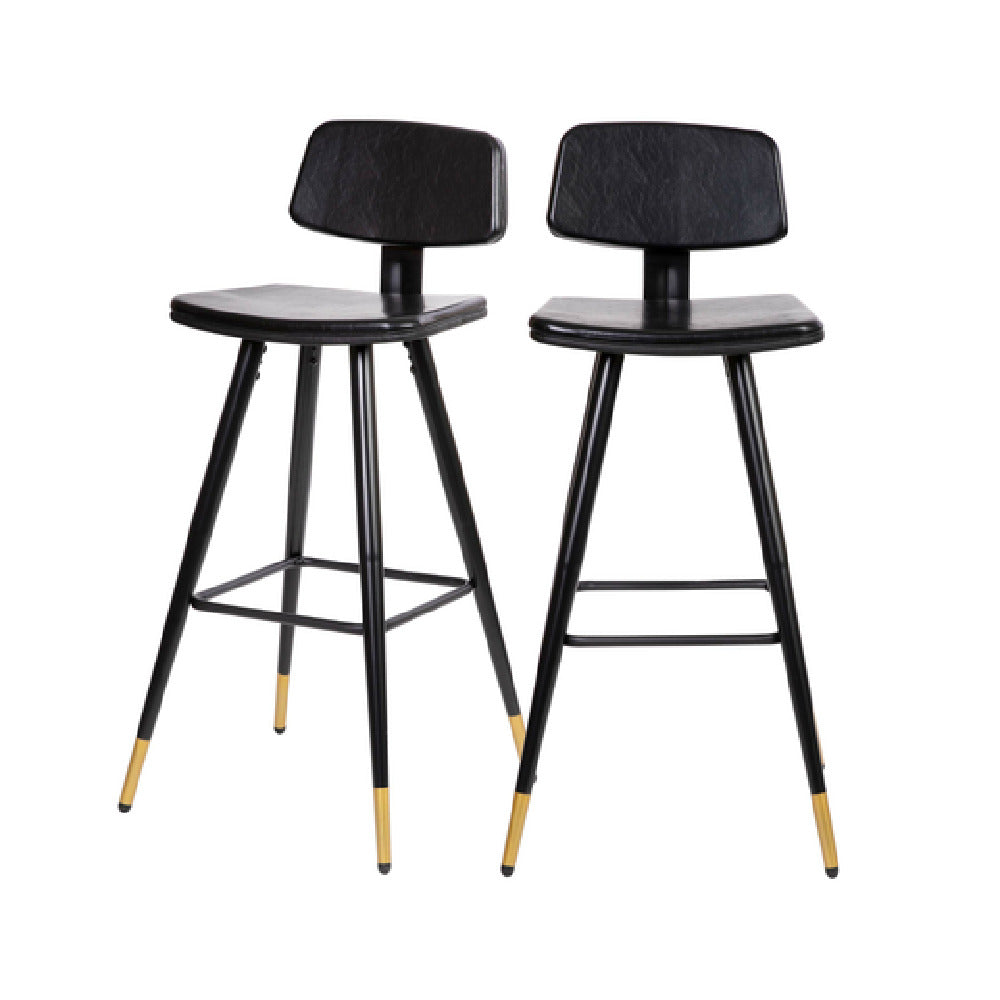 Flash Furniture, AY-S02-BK-GG, Kora Barstool, 29-3/4"H seat, low-back design, black upholstered back & seat, footrest, black powder coated iron frame, gold-tipped legs, protective floor glides (set of 2) (assembly required)