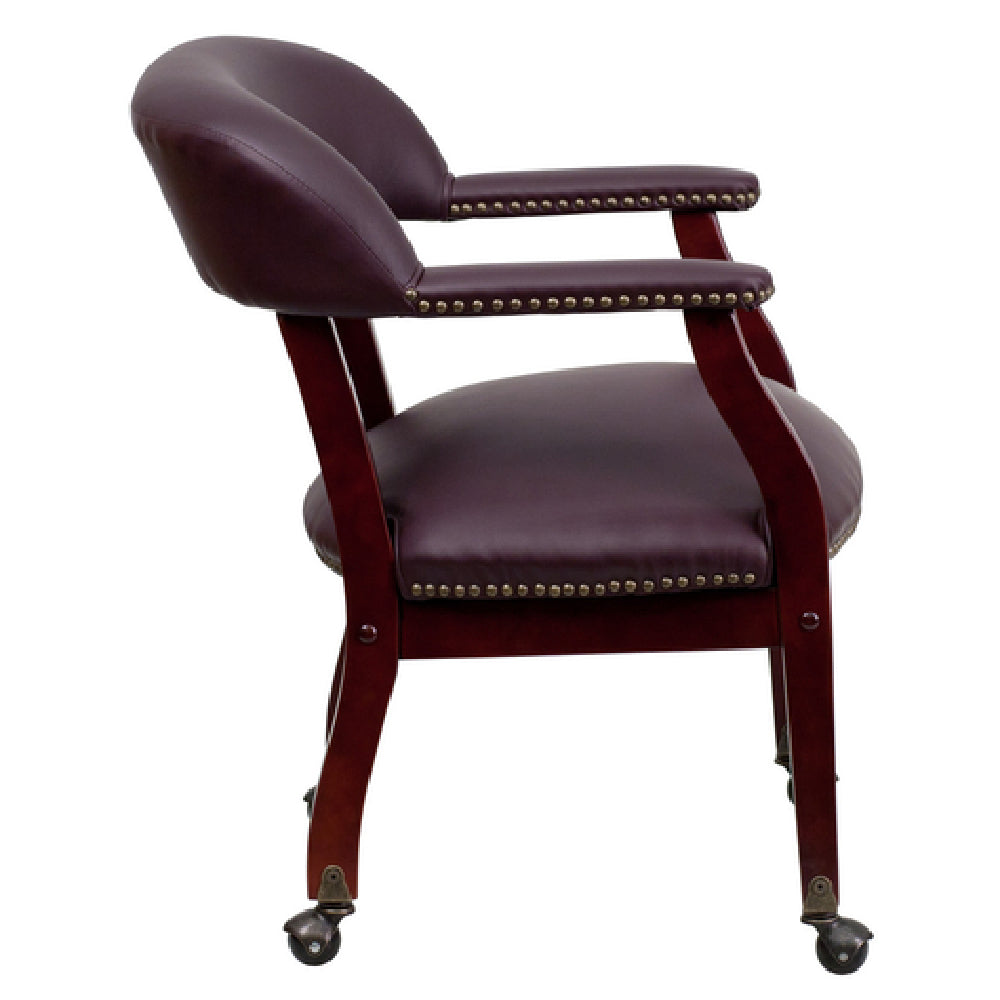 Designed with a durable hardwood frame and luxurious Italian leather upholstery, this conference chair offers a blend of style and longevity unmatched in its class. Its open back and nailhead accents elevate professional aesthetics, while brass casters ensure smooth mobility, simplifying room reconfiguration. The 250 lb. capacity and reinforced construction foster reliable performance for high-traffic commercial environments, differentiating it from competing models that lack premium materials or advanced mobility features.