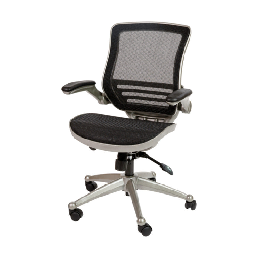 The Warfield Executive Swivel Chair offers sophisticated ergonomic support with a mesh back and seat designed for high durability in commercial office settings. Its adjustable height mechanism, built-in lumbar support, and synchronized tilt system facilitate customizable comfort tailored to executive and administrative workflows. Featuring a sturdy nylon base with dual-wheel casters, it ensures stability and mobility in busy work environments. The padded flip-up arms simplify cleaning and maintenance, making it ideal for frequent use in modern office spaces and conference areas.
