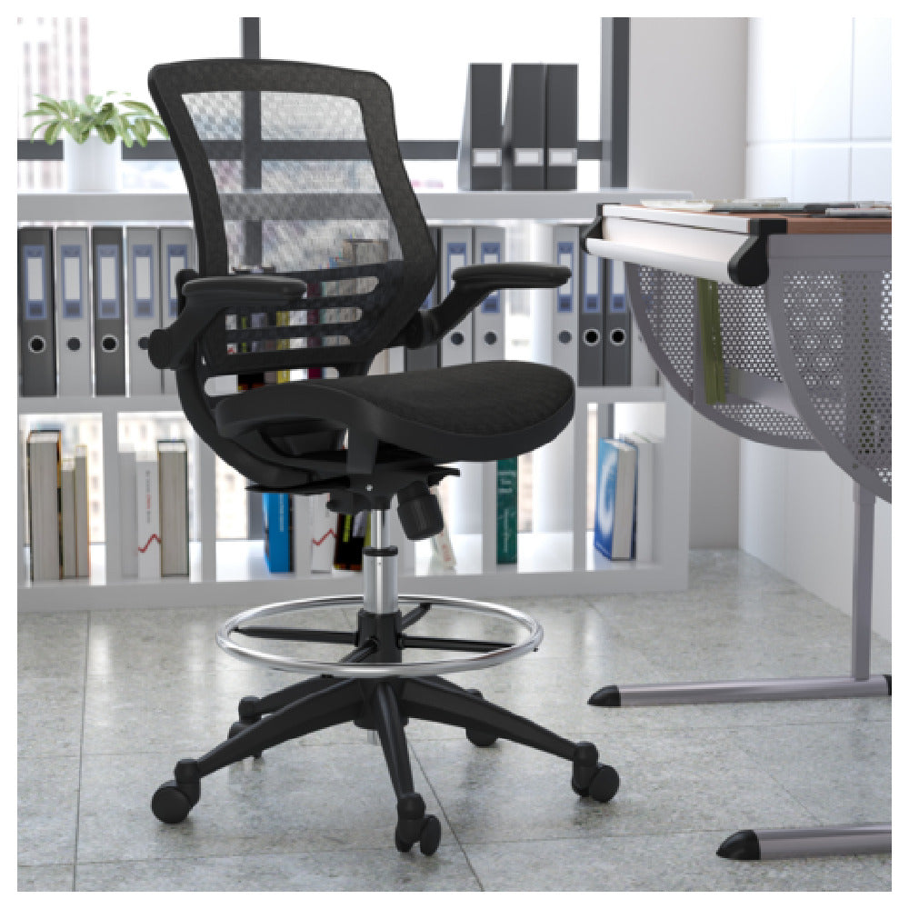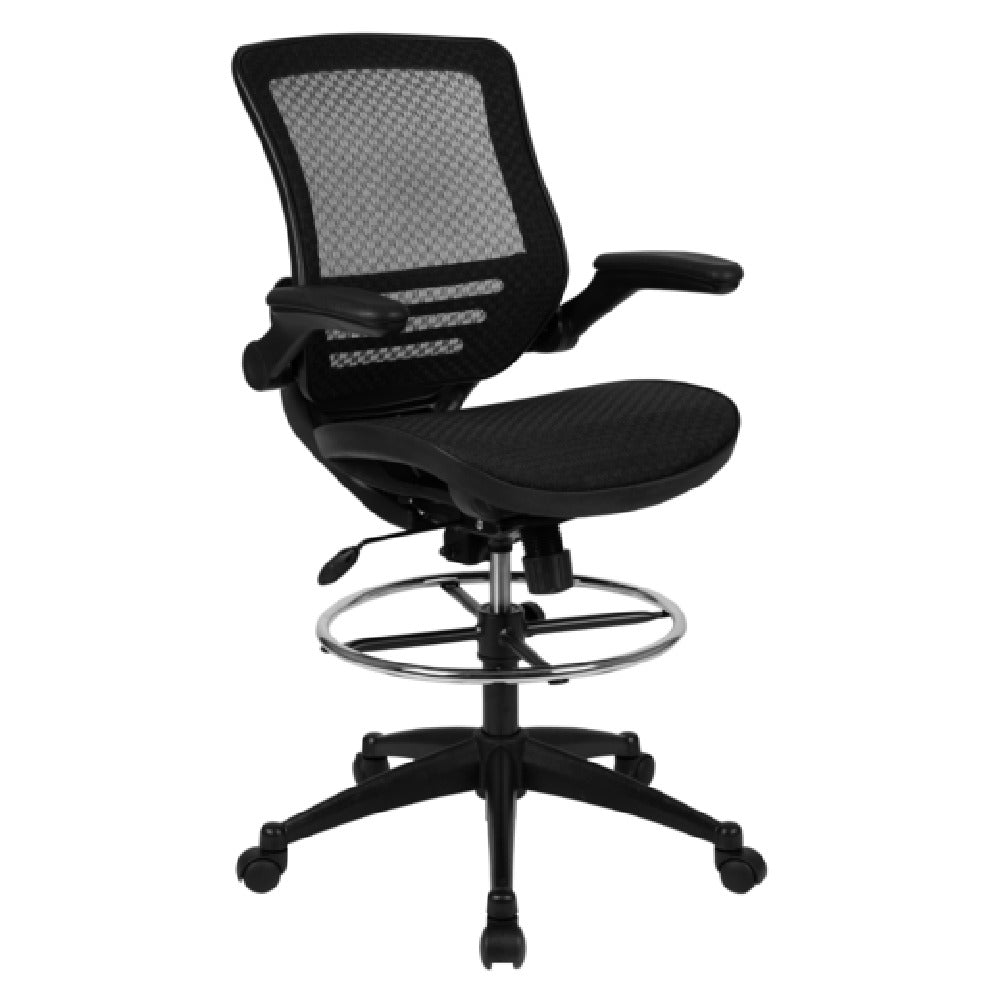 Flash Furniture BL-LB-8801X-D-BLK-GG 25 Inch Drafting Chair Mesh Back with Arms