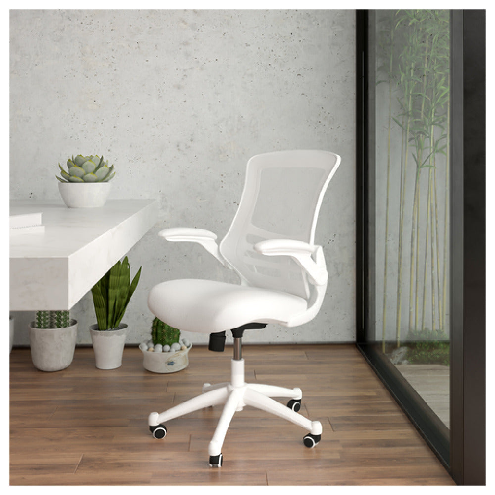 Flash Furniture BL-X-5M-WH-WH-GG 24 Inch Upholstered Swivel Task Chair with Mesh Back