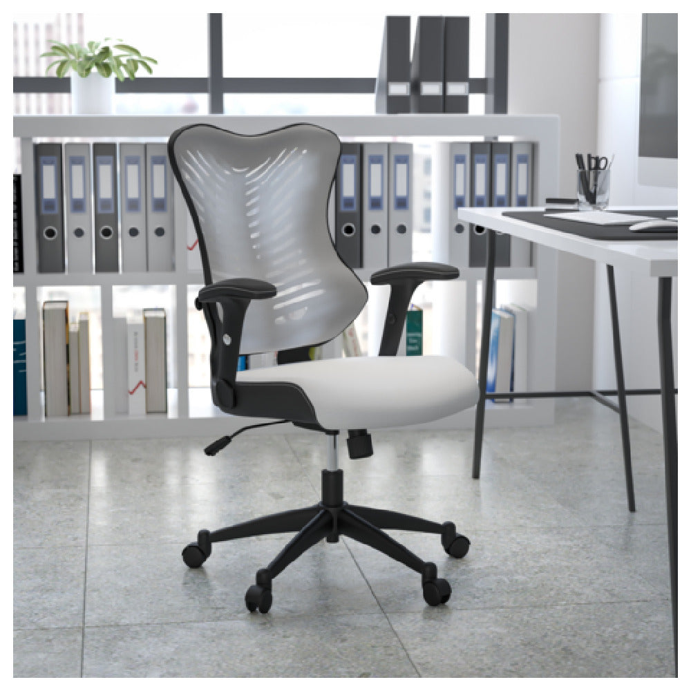 Flash Furniture BL-ZP-806-WH-GG 25 Inch Chair Swivel Padded Mesh Ergonomic with Arms