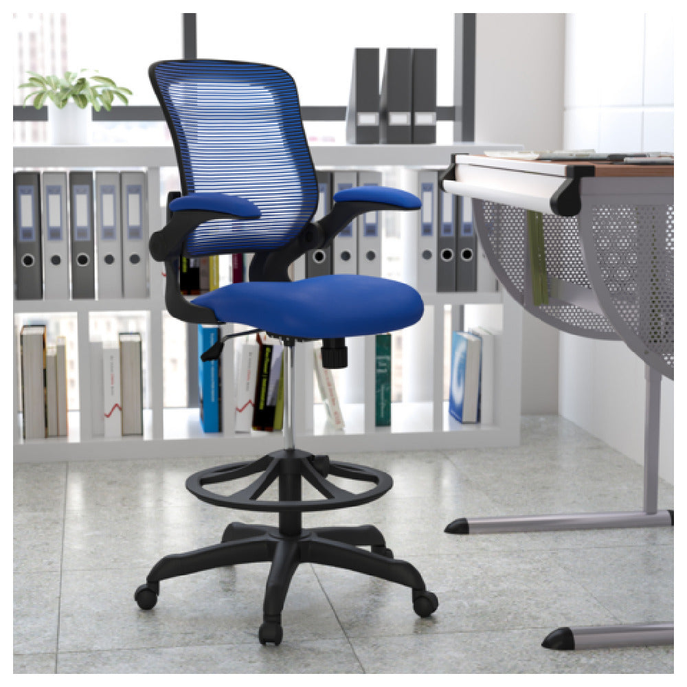 These mid-height ergonomic swivel chairs, including the Flash Furniture BL-ZP-8805D-BLUE-GG, are built for technical drafting and design environments. Their robust construction, adjustable height, and breathable mesh backs ensure support during extended use, making them suitable for professional studios and architectural offices where precise, comfortable seating is essential.