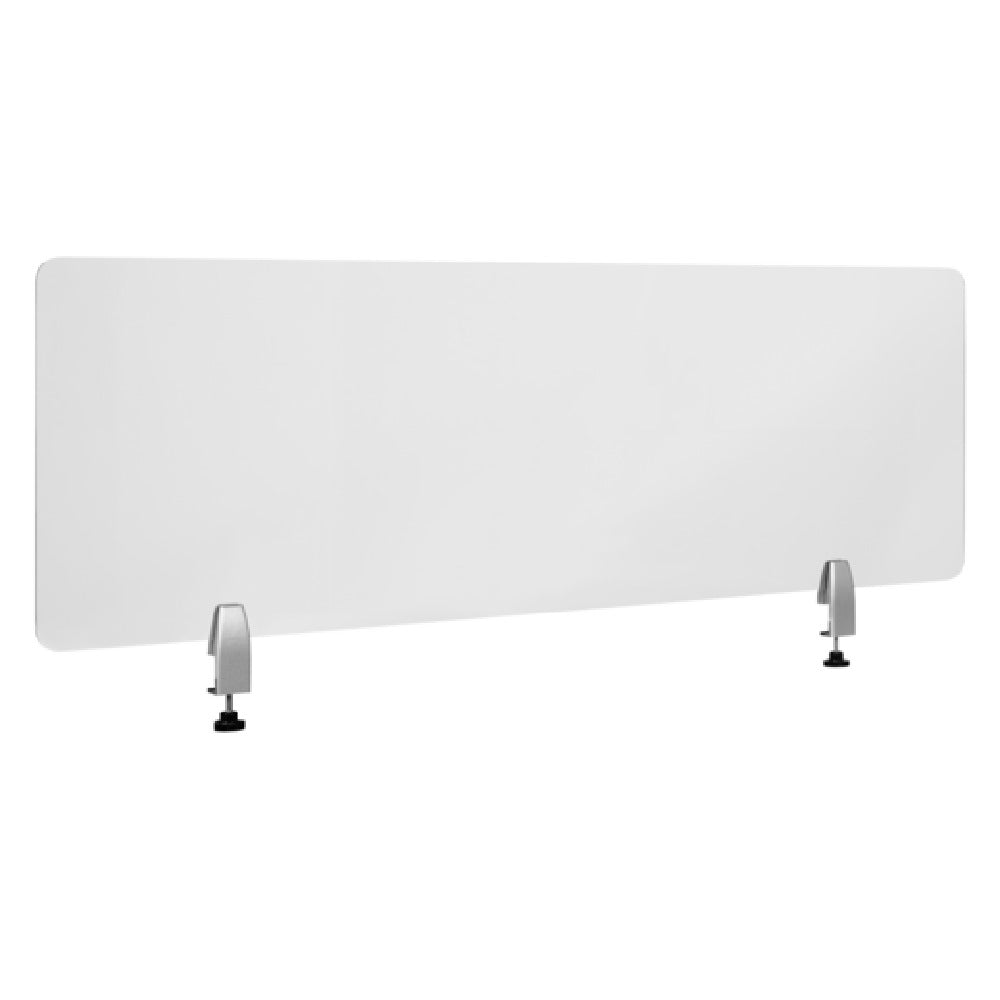 The Flash Furniture Halle Desk Partition is engineered to provide a static, impact-resistant barrier that enhances safety during interactions at shared work surfaces. Its acrylic construction offers high transparency, allowing clear visibility and communication. The unit is designed for quick, tool-less installation and effortless cleaning, supporting hygiene standards in commercial spaces. Its dimensions of 55"L x 18"H make it suitable for standard desks and counters, facilitating workflow separation while maintaining accessibility. The included hardware ensures secure attachment and stability, ideal for moderate-use environments like offices, reception desks, and foodservice stations.