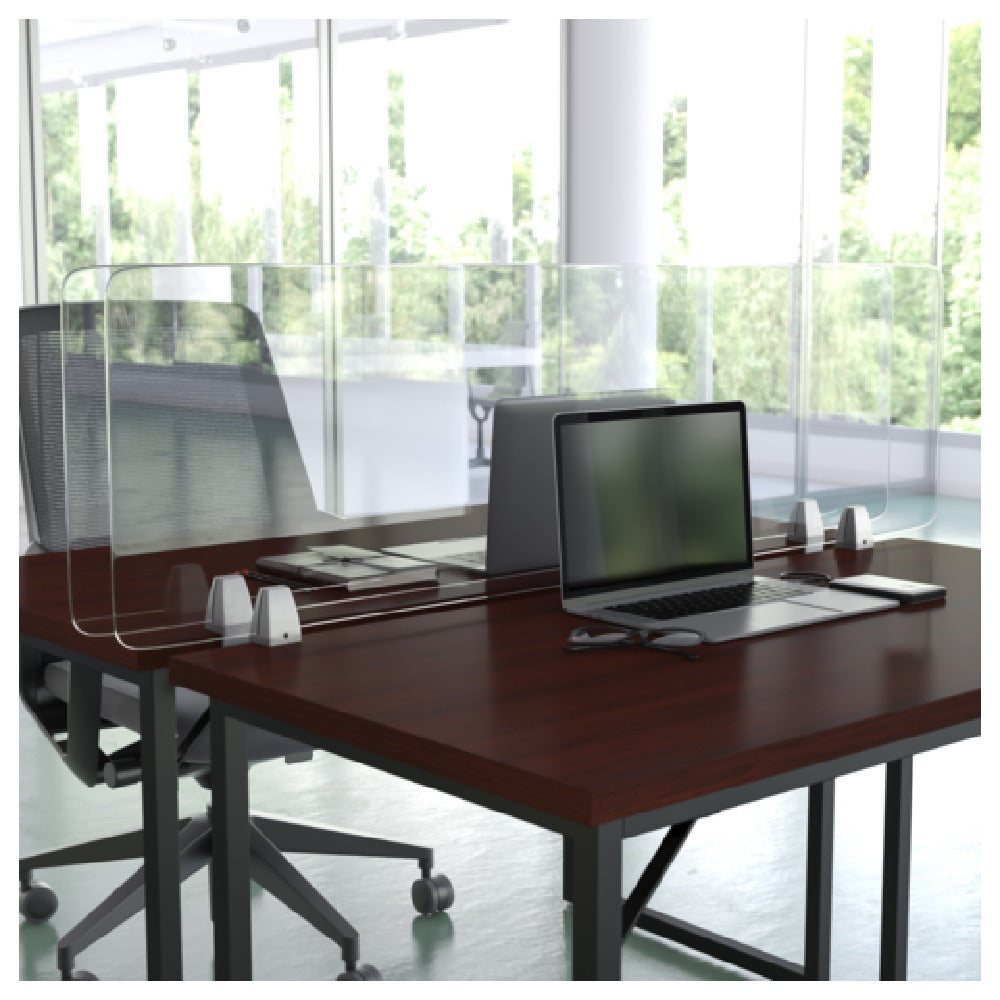 The Flash Furniture BR-DDIA-45139-GG Halle Desk Partition is a high-quality safety shield constructed from clear acrylic, offering a durable barrier designed to enhance workspace safety in professional environments. Measuring 55 inches in length and 18 inches in height, this protective guard provides a transparent division for desk surfaces, supporting infection control and physical separation in office, hospitality, or commercial settings. Its robust acrylic material ensures high clarity, impact resistance, and ease of maintenance, making it suitable for high-traffic workstations and customer service areas. Precise technical details include a weight of 17 lbs and a thickness of 0.25 inches, optimized for reliable, long-term use in various workplace configurations.