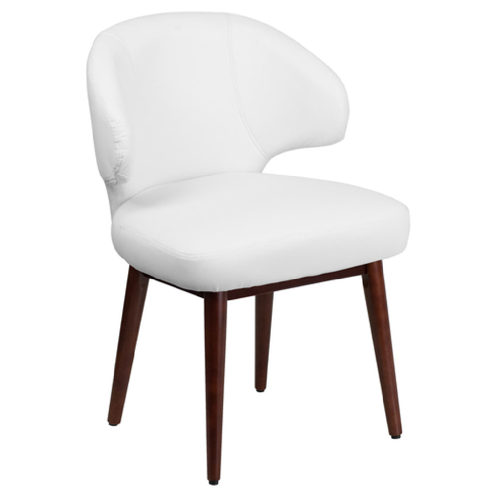 The Flash Furniture BT-2-WH-GG Comfort Back Series Executive Guest Chair Curved Back is a professionally designed side chair intended for commercial indoor environments such as conference rooms, waiting areas, and executive suites. Crafted by Flash Furniture, this chair features a curved upholstered back with LeatherSoft upholstery combined with CA117 fire-retardant foam, providing durability and safety for high-traffic settings. Its walnut beechwood frame and legs ensure long-lasting stability, making it suitable for use in busy hospitality and corporate furniture applications. The chair measures 33.75 inches in height, with a 23.5-inch width and 24-inch depth, supporting ergonomic seating for extended periods, while assembly is required for deployment in professional spaces.