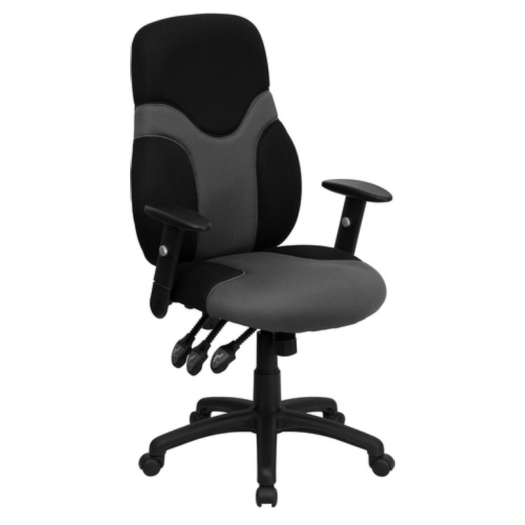 Flash Furniture BT-6001-GYBK-GG 27 Inch Ergonomic Swivel Task Chair with Padded Arms