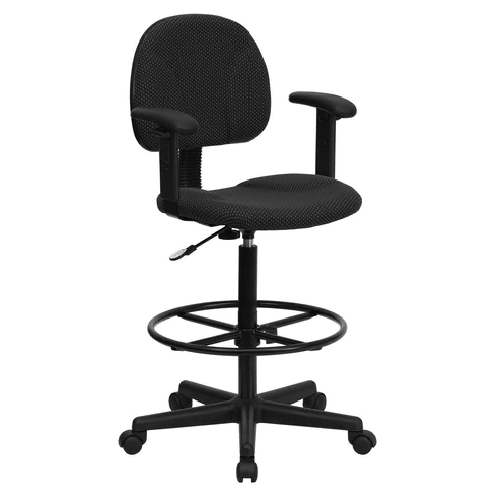 Flash Furniture, BT-659-BLK-ARMS-GG, Ergonomic Swivel Drafting Stool, 38-1/4" to 42-3/4" adjustable height, 250 lb. weight capacity, low back design, contoured seat and back, pin dot patterned polyester upholstery, back depth adjustment knob, accordion back cover, height adjustable padded arms, adjustable cylinder heights: 22-1/2" to 27" or 26" to 30-1/2", height adjustable black foot ring, CA117 fire retardant foam, heavy duty black nylon base, dual wheel casters, black (assembly required) (in stock items usually ship within 24 hours)