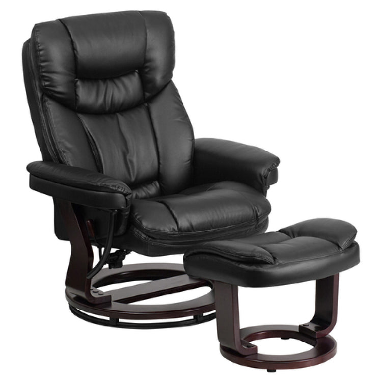 Flash Furniture BT-7821-BK-GG 33 Inch Swivel Recliner with Ottoman Black Upholstered Wood Base