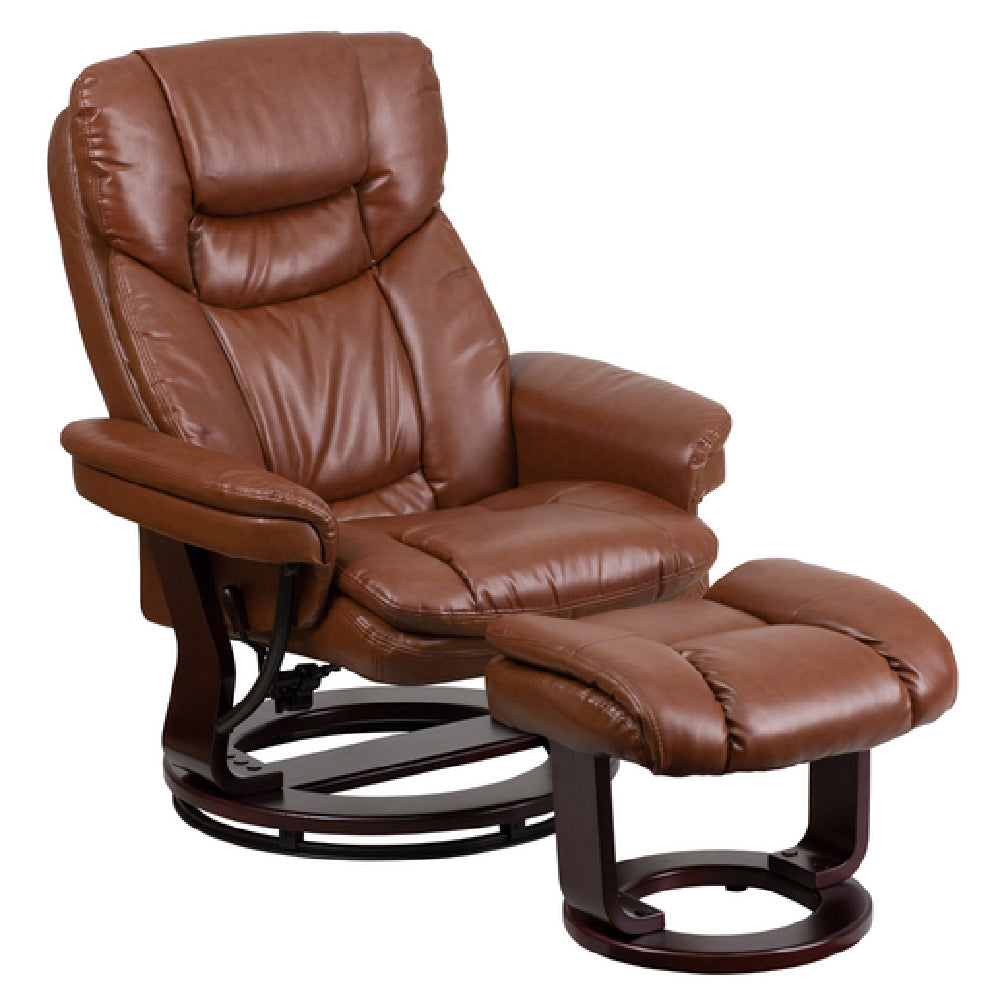 Flash Furniture BT-7821-VIN-GG 33 Inch Swivel Recliner Upholstered Brown Vintage with Ottoman