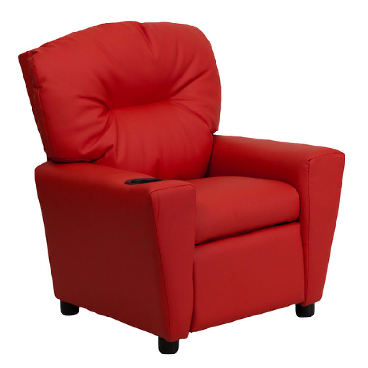 A commercial kids recliner is a child-sized seating fixture designed specifically for high-traffic environments such as schools, daycare centers, and recreational facilities. These recliners incorporate safety mechanisms, durable materials suitable for frequent cleaning, and ergonomic features that support comfort and stability. The Flash Furniture BT-7950-KID-RED-GG Kids Recliner exemplifies these qualities with its robust hardwood frame, vinyl upholstery, and safety features, making it ideal for educational or entertainment settings serving children. Built for moderate throughput, this seat provides a secure, comfortable space for children during leisure, waiting, or activity periods in educational or hospitality contexts.