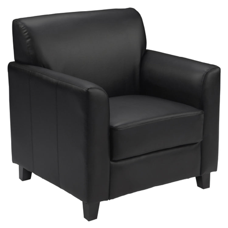 A commercial reception chair is an upholstered seating solution designed specifically for high-traffic public areas such as lobbies, waiting rooms, and offices. These chairs are built with durable materials like bonded LeatherSoft and hardwood frames to withstand frequent use while maintaining aesthetic appeal. The Flash Furniture BT-827-1-BK-GG Hercules Diplomat Series Reception Chair is installed in professional environments requiring comfortable, stylish, and safety-compliant seating. Its fixed cushions and fire-retardant foam make it suitable for high-use spaces like corporate receptions or upscale waiting lounges where long periods of seating are common. Its dimensions and construction optimize space while supporting a professional-grade experience for visitors and clients.