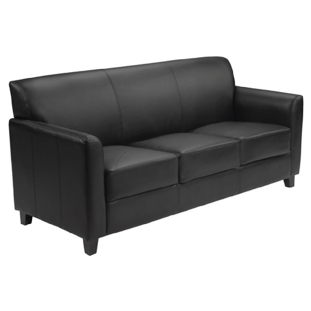 Flash Furniture BT-827-3-BK-GG 70 Inch Reception Sofa LeatherSoft Upholstery Flared Arms with Plush Cushions