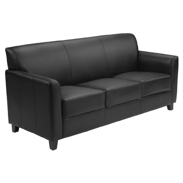 The Flash Furniture BT-827-3-BK-GG Hercules Diplomat Series Reception Sofa is a commercial-grade indoor seating solution designed for professional environments such as lobbies, waiting areas, and reception zones. It features high-quality LeatherSoft upholstery with plush cushioning and fixed seat and back cushions, providing durability and comfort for intensive use. With dimensions of 70 inches in width, 29 inches in depth, and a height of 32-1/4 inches, this sofa offers ample seating space built on sturdy hardwood construction. Its sleek black wood feet combine style with stability, making it suitable for high-traffic hospitality, corporate, or healthcare settings requiring reliable, long-lasting furniture. This model is engineered for ease of maintenance and consistent performance in busy commercial environments.