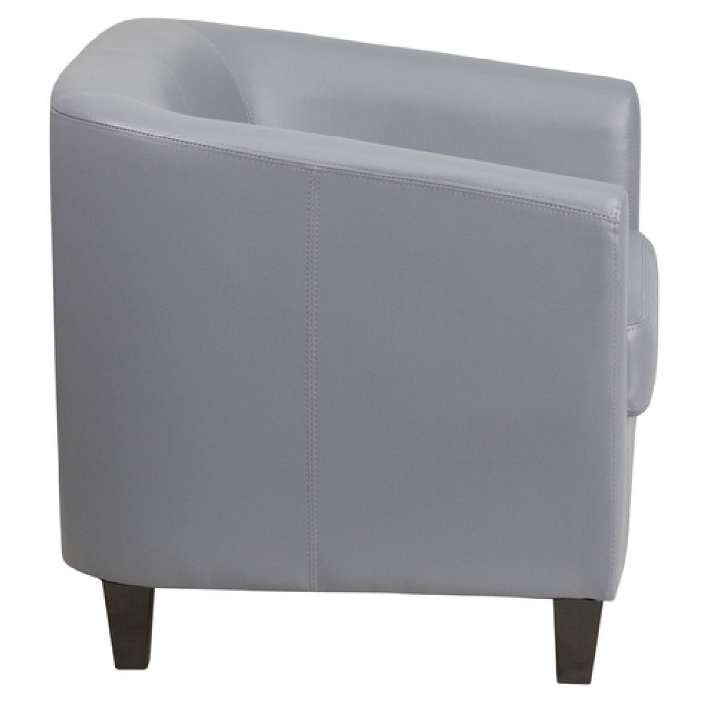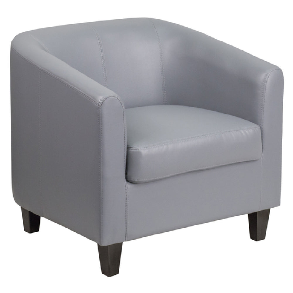 The Flash Furniture BT-873-GY-GG Office Guest and Reception Chair is a commercial-grade indoor seating solution designed for high-traffic hospitality and office environments. Built with a solid inner hardwood frame, this lounge chair features durable LeatherSoft upholstery complemented by tailored stitching and a barrel back for ergonomic support. With a 250 lb. weight capacity and fixed, dense foam padded seat, it ensures long-lasting comfort and stability. This model is ideal for reception areas, waiting lounges, and guest seating zones, where durability and appearance are prioritized. It measures 28 inches in height, 29.75 inches in width, and 29 inches in depth, making it suitable for various commercial spaces requiring reliable and stylish seating.
