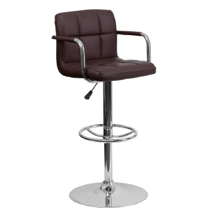 The Flash Furniture CH-102029-BRN-GG Swivel Bar Stool with Arms is a commercial-grade indoor seating solution designed for versatile bar and counter environments. Crafted by Flash Furniture, this model features a contemporary style with upholstered quilted back and seat components, providing comfortable support for extended use in hospitality or residential settings. Its adjustable height mechanism allows seamless transition from counter to bar height, ensuring adaptability to various workspace requirements. The 19-1/2" diameter chrome base and swivel seat facilitate ease of movement, improving workflow efficiency and guest interaction in professional foodservice spaces.