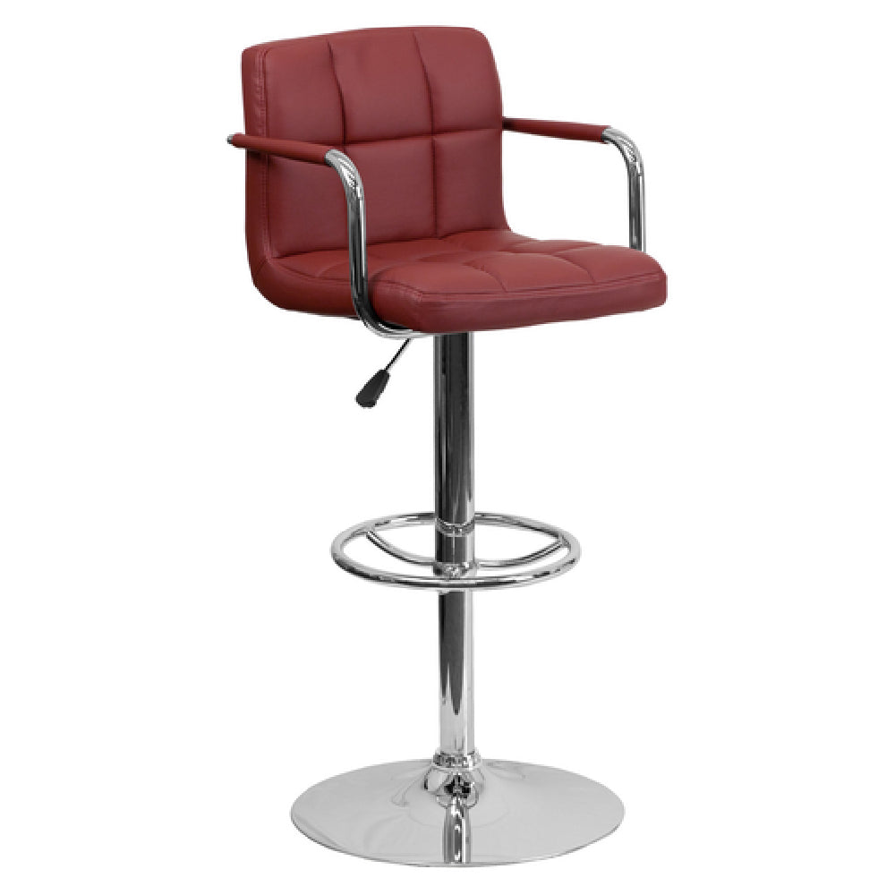 The Flash Furniture CH-102029-BURG-GG Swivel Bar Stool With Arms Adjustable Height is a commercial-grade indoor seating solution designed for versatile foodservice environments. Built by Flash Furniture, this model features a contemporary style with a mid-back design, upholstered quilted back and seat, and chrome-wrapped upholstered arms. Its adjustable gas lift mechanism facilitates seamless height adjustments from counter to bar levels, optimizing ergonomic comfort in busy hospitality settings. The sturdy 19-1/2" diameter chrome base ensures stability, while the chair’s upholstered vinyl surface provides durability and easy maintenance. Its specifications make it suitable for cafes, bars, and lounge areas requiring efficient, comfortable, and stylish seating for medium throughput usage.
