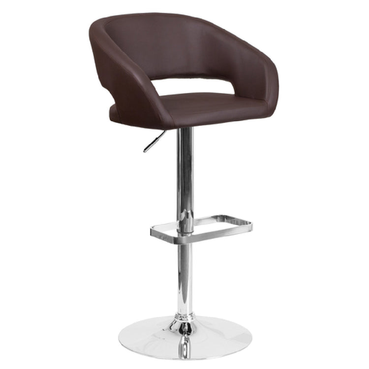 The Flash Furniture CH-122070-BRN-GG Swivel Bar Stool is a commercial-grade indoor seating solution designed for contemporary foodservice environments. This versatile stool features an adjustable height mechanism, enabling quick transitions between counter and bar heights, making it suitable for various hospitality setups. Its upholstered rounded mid-back and seat provide comfort and style, while a gas lift ensures smooth height adjustments. The 17-5/8" diameter chrome base offers stability, with a durable vinyl finish that combines aesthetic appeal with ease of maintenance. Engineered for residential and light commercial use, this bar stool meets the demands of dynamic foodservice workflows with its fire-retardant foam cushioning and robust construction, ideal for bars, cafes, and hospitality lounges.